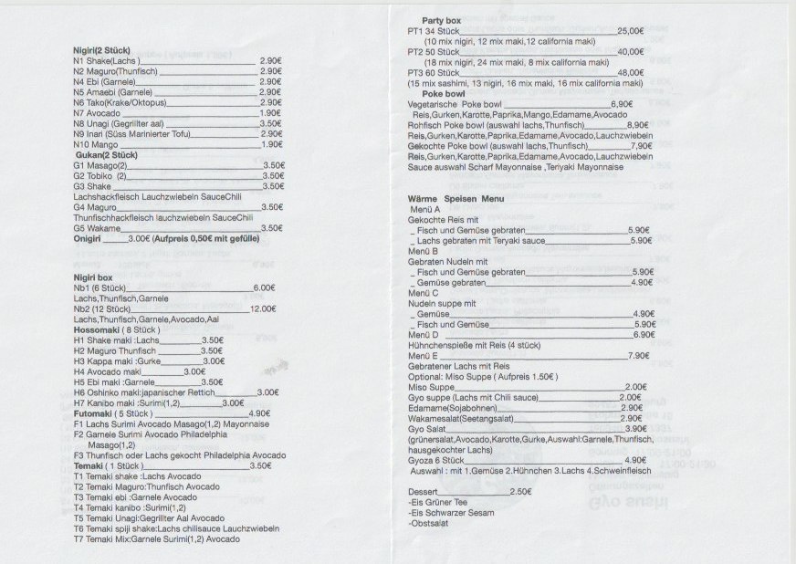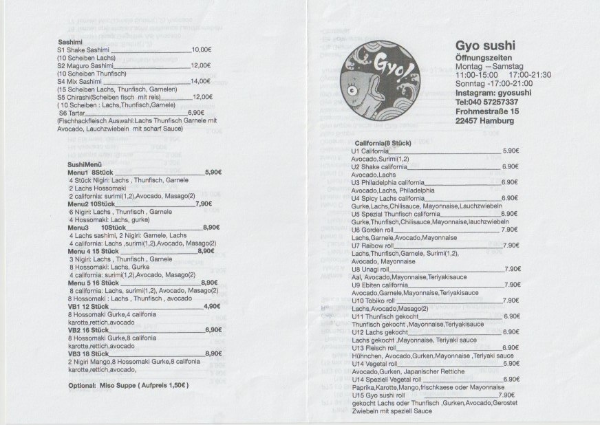 Gyo sushi Menu